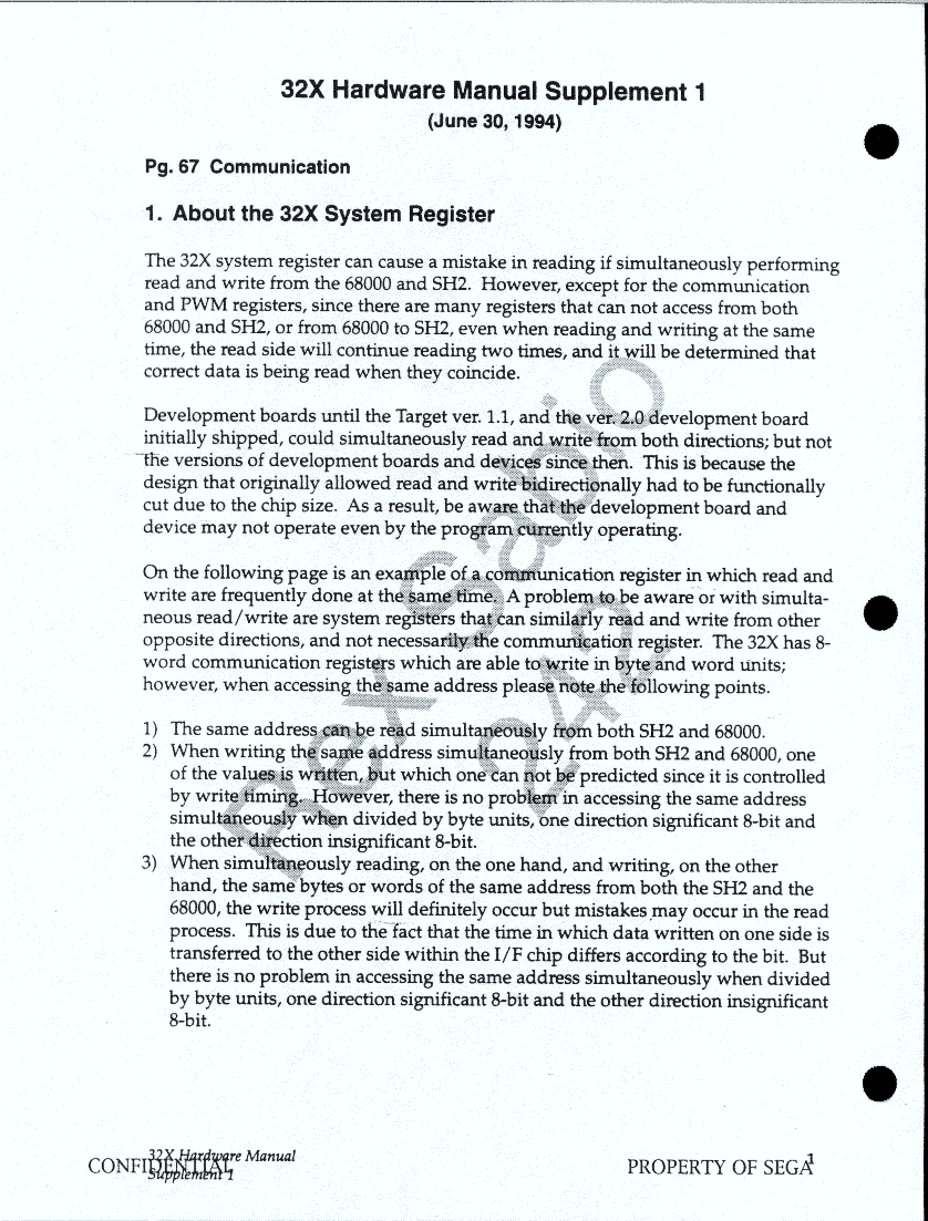 Page 31 - 3.2 System Registers - SH2 Side - Communications in Both Directions with 68000