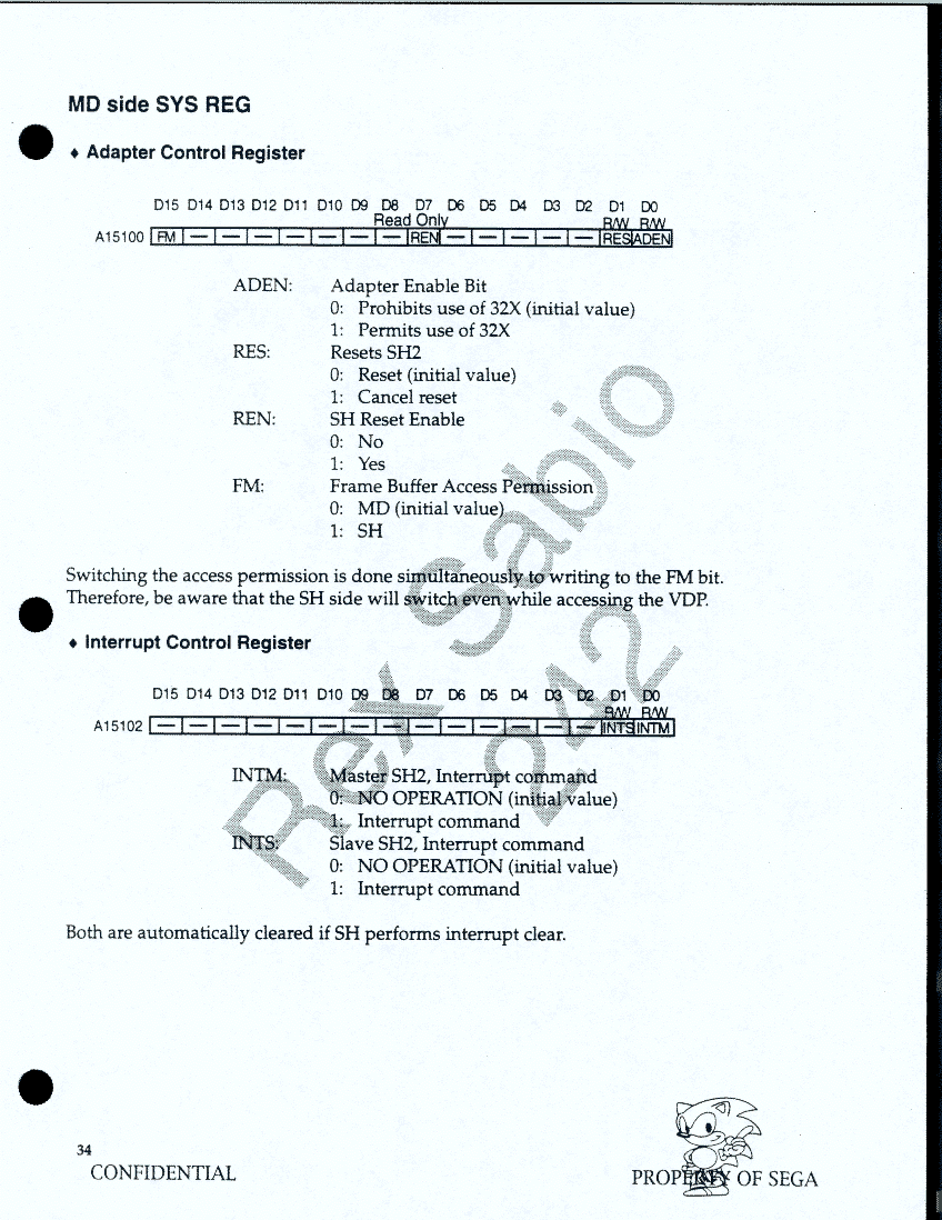 Page 22 - 3.2 System Registers - Mega Drive Side - Interrupt Issued for SH2, Switches ROM Cartridge Bank