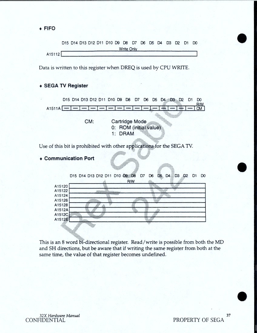 Page 37 - MD side SYS REG - FIFO, SEGA TV Register, Communications Port