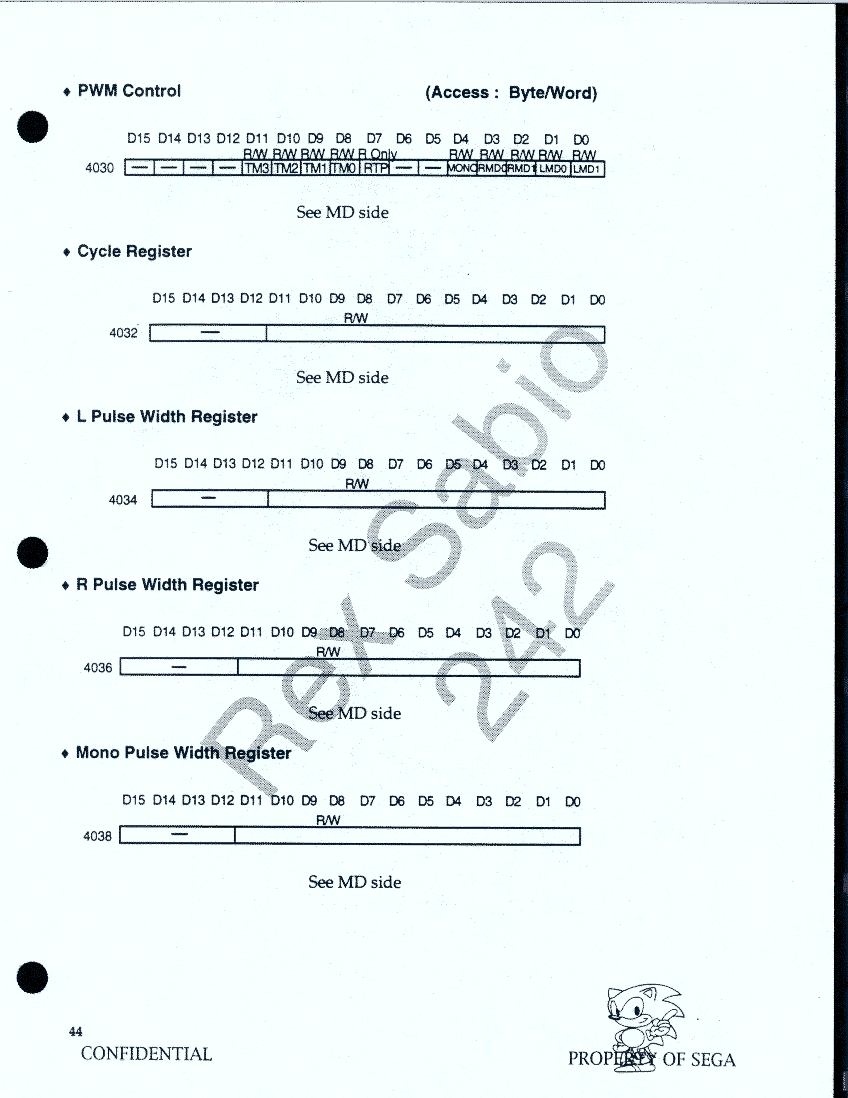 Page 44 - SH side SYS REG - PWM Control, Cycle Register, L Pulse Width Register, R Pulse Width Register, Mono Pulse Width Register